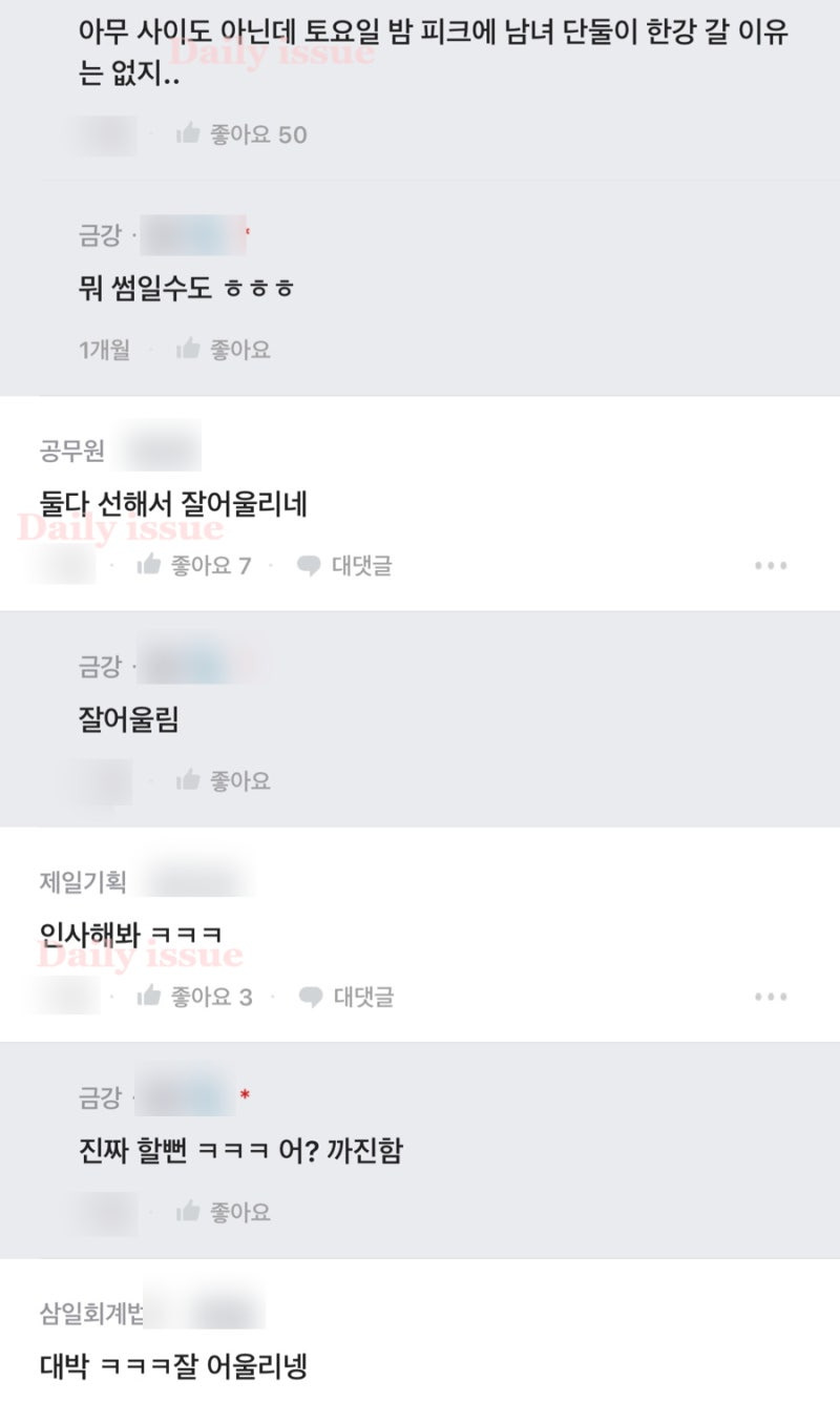 현커설이 알려지게 되자 누리꾼들은 "둘만? 사귀나?" "둘다 순둥한데 잘 만났네" "느낌 괜찮음 소방관이랑 박사" "아무 사이도 아닌데 토요일 밤 피크에 남녀 단둘이 한강 갈 이유는 없지..." "둘다 선해서 잘 어울리네"