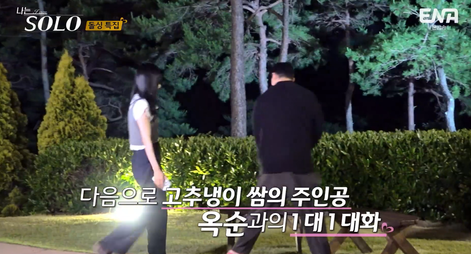 옥순은 경수에게 "나는 경수님이 정희에게 관심 있는 줄 알았다" 라며 경수의 마음을 재차 확인하고, 아까는 매워서 말 못했는데 선택해줘서 고맙다고 표현합니다.
