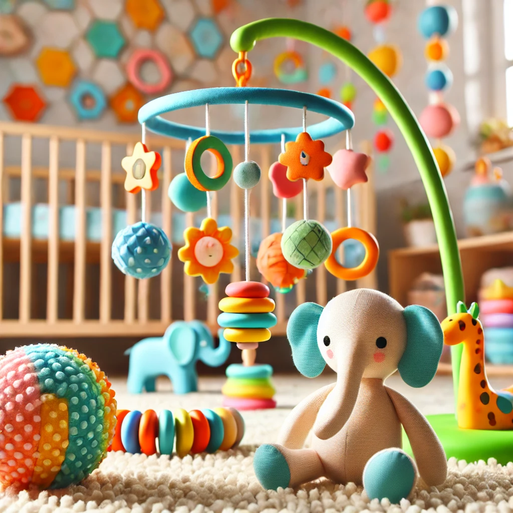3~6개월: 컬러 모빌, 치발기, 촉각 장난감