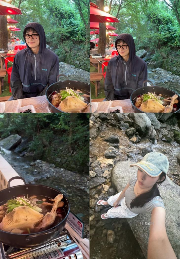 공개된 사진 속에는 계곡에서 백숙을 앞에 두고 포즈를 취한 정건주의 모습이 담겨 있어요. 이날 남서연 역시 계곡에서 찍은 백숙 사진을 공유했습니다.