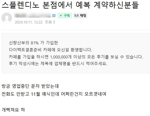 결혼 준비 중 맞춤 예복 업체 ‘스플렌디노’의 갑작스러운 폐업