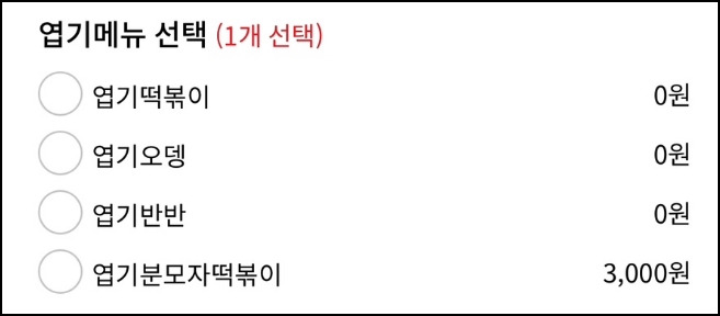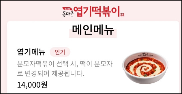 엽기메뉴(떡볶이/ 오뎅/반반)주문시에만 할인 혜택이 적용됩니다.