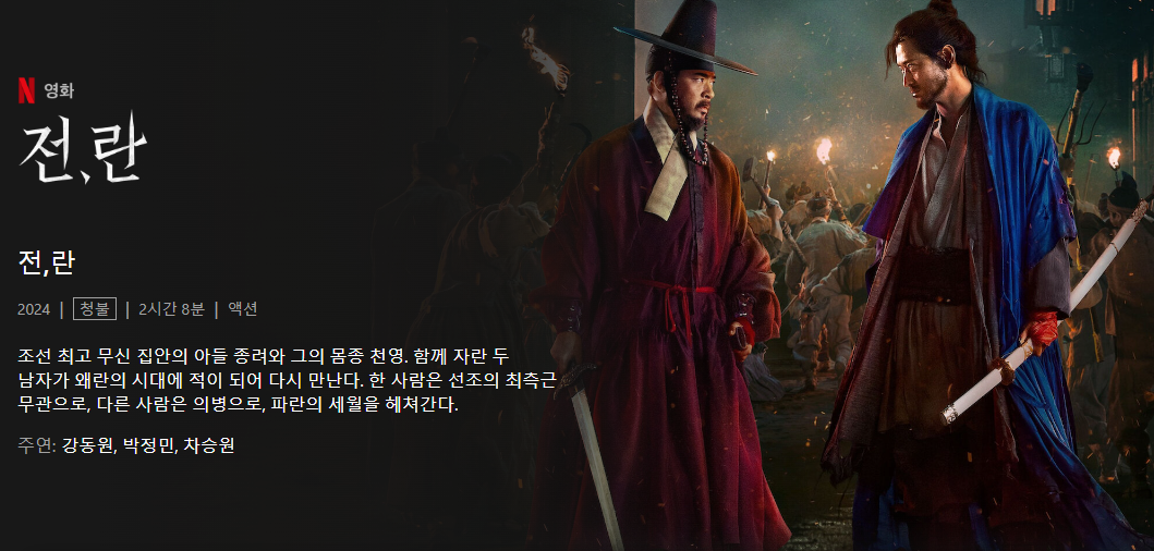 넷플릭스 영화 전란 킬링타임용으로 괜찮습니다!! 추천!