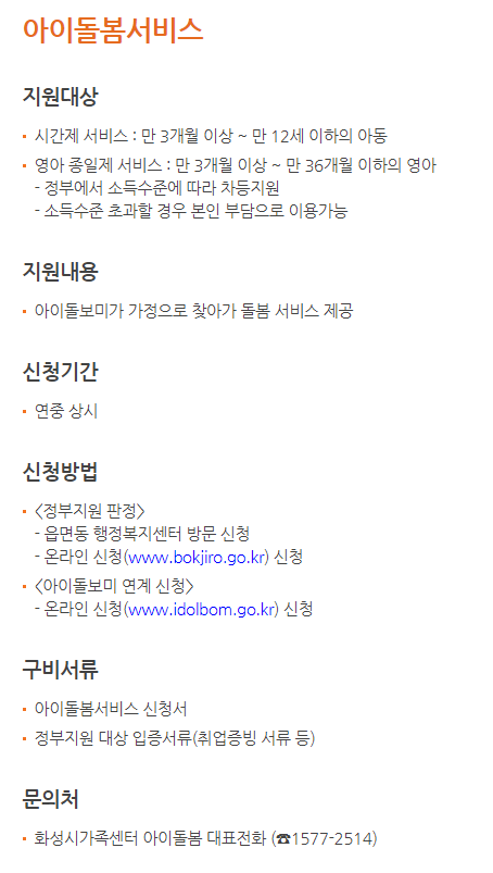 아래 내용에 대해 정확한 정보 확인이 필요하시거나 각 분야별 연락처가 필요하실 경우 화성시 복지/여성 정책보기에 자세히 나와있으니 꼭 참고하시기 바랄게요.